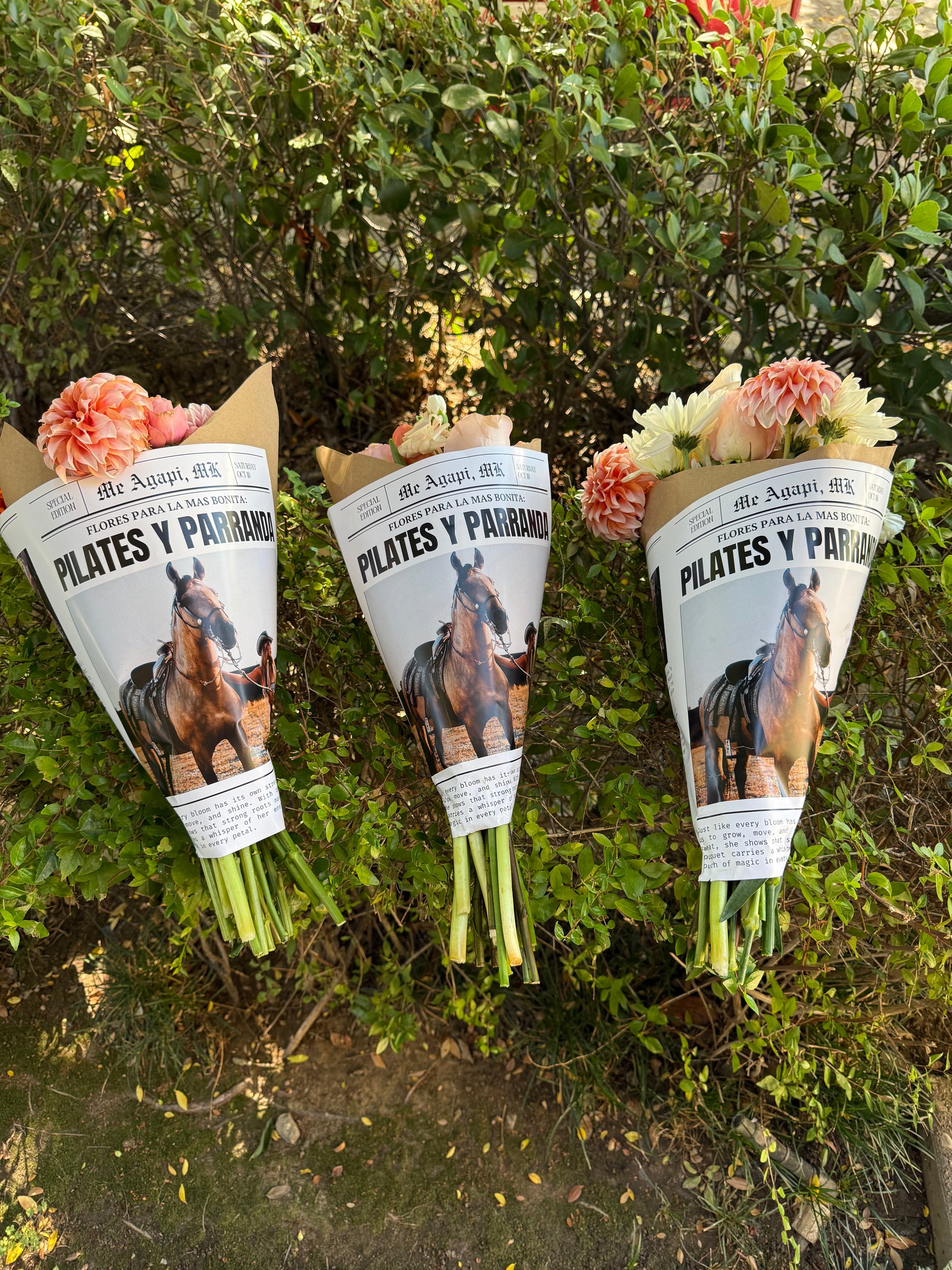 🌸 Custom Newspaper Flower Bouquet – Pilates y Parranda Edition 🌸